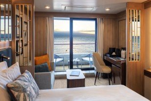 Experience our Suite accommodations—spacious, light-filled retreats designed for indulgent nights after inspiring days ashore. Floor-to-ceiling windows and expansive private balconies, accessible from both the bedroom and living area, invite you to step outside and take in incredible ocean views. Whether relaxing in your plush living room or unwinding in a sumptuous queen bed, each Suite offers a personal haven where comfort, elegance, and the anticipation of new adventures come together seamlessly. Your specific stateroom will be assigned prior to embarkation.