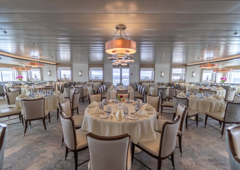 The Greg Mortimer ship is packed with restaurants, with the main dining room serving up a wide, ever-changing menu of meals and snacks available 24 hours a day. The Tuscan Grill is the place to go for a wide variety of meats cooked to perfection.