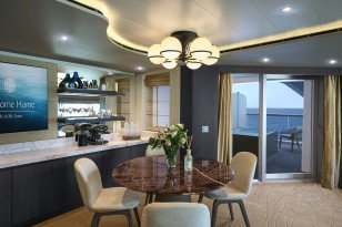 Our Cocoon Residences are amongst the most spacious of our Ocean Residences, featuring oversized floor-to-ceiling windows leading onto the expansive panoramic terrace on the ship's coveted aft deck. Here, guests can drink in the spectacular views from their private whirlpool, relax in sun beds or the comfortable outdoor lounge designed by Molteni & C, or enjoy dinner overlooking the ocean.