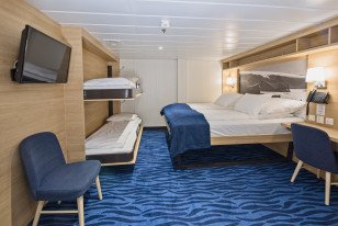 After a complete reconstruction, MS Spitsbergen joined the Hurtigruten fleet in 2016. The ship features high technical standards as well as comfortable, modern public areas and cabins. The vessel's fresh Scandinavian design reflects a colour palette derived from the sea. She is modern and environmentally progressive and will undergo further improvements that will reduce emissions and fuel consumption even more. The new ship’s maneuverability and optimal size make her quite suitable for exploring polar waters.
