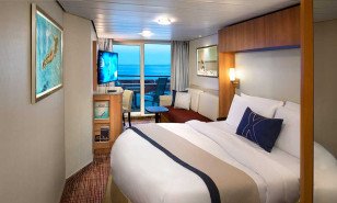 Take in the stunning sea views on a relaxing morning onboard the Celebrity Solstice. Featuring a queen-size bed and everything else a modern traveller needs - the perfect cabin to unwind in after a day of adventures.
