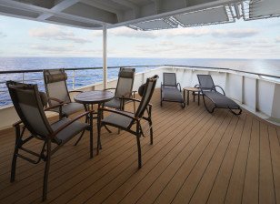 Ample indoor and outdoor space come together to create your private sanctuary at sea. Relax on your spacious veranda and enjoy amenities that all contribute to your luxury experience. Your personal veranda lets you greet the day and enjoy fresh sea breezes.