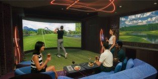 Bond over a round of virtual golf, baseball, soccer, host a karaoke night or watch a movie in this reservable space made for private get-togethers.