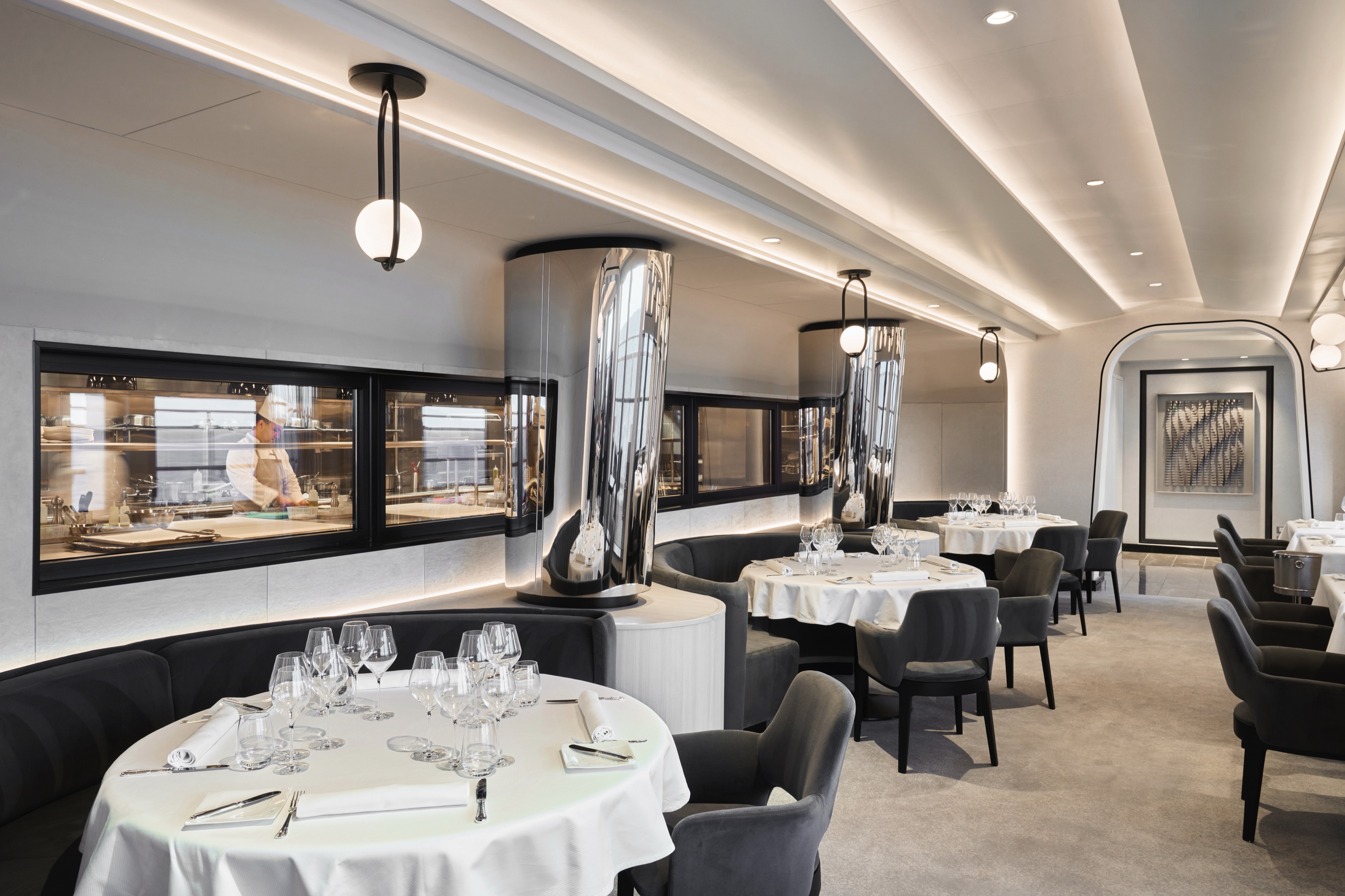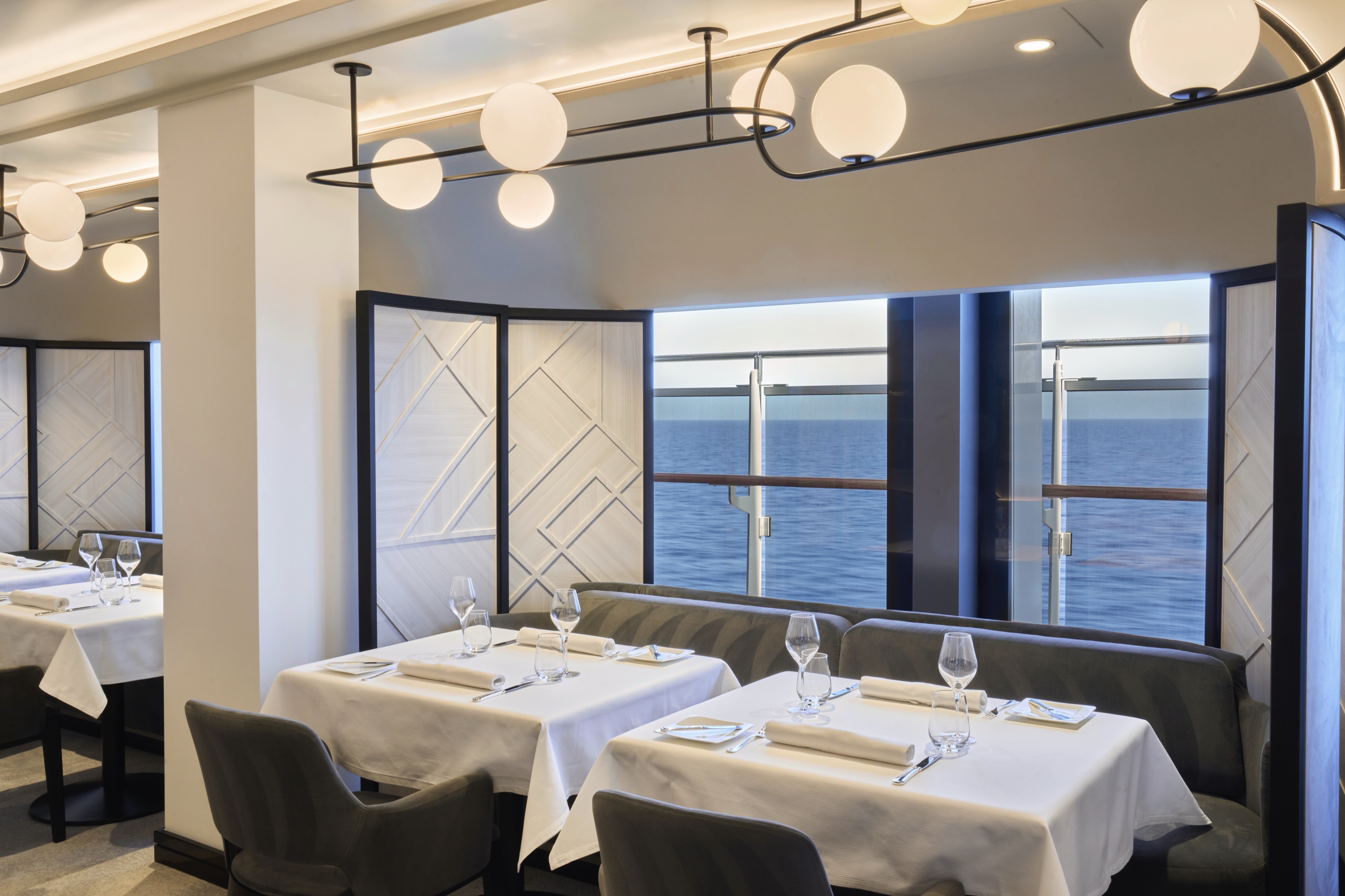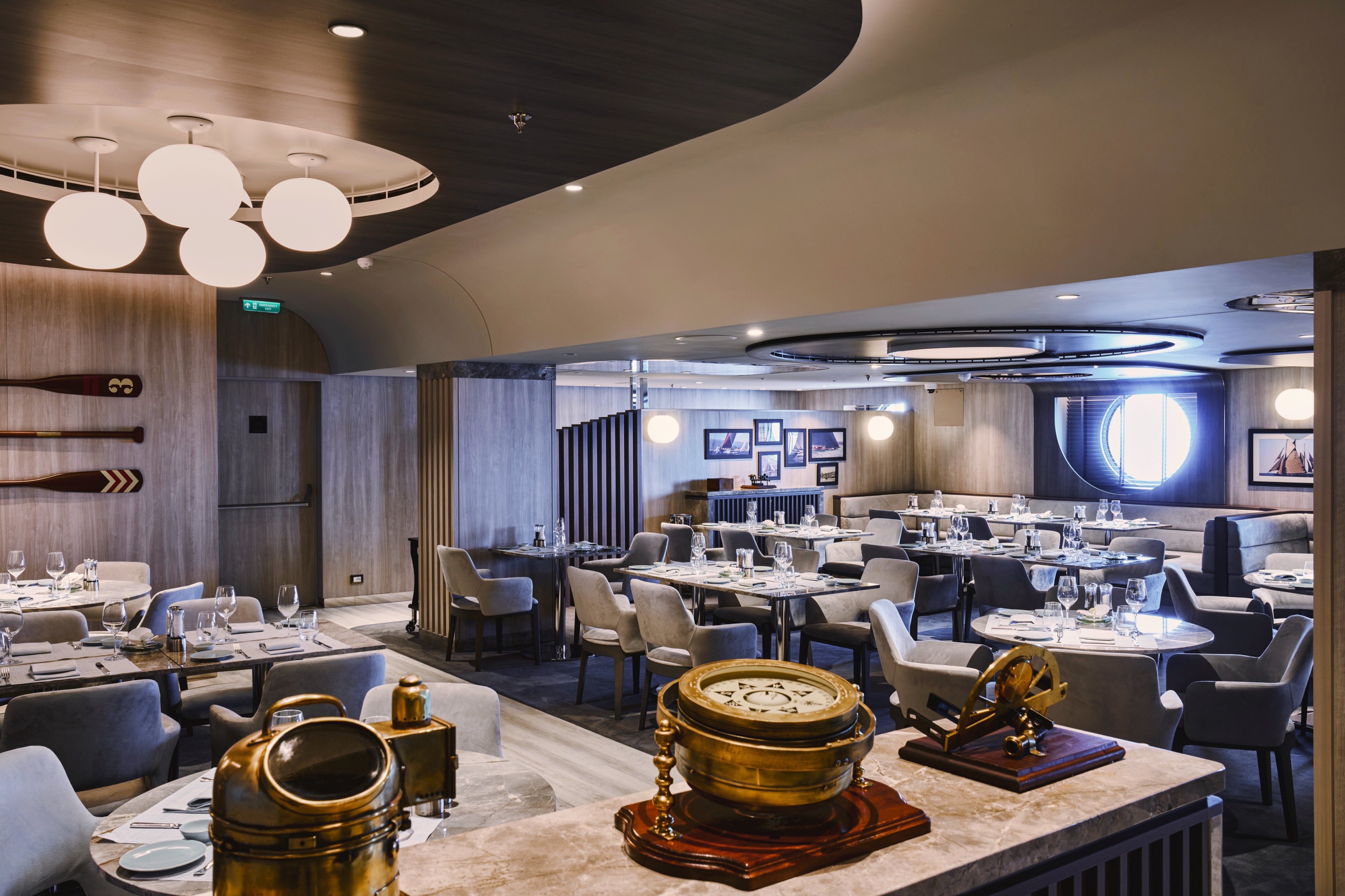 Effortlessly refined in its design, space creates a relaxed, convivial atmosphere, where bright sunshine streams through large portholes and Med-influenced music transports guests on a culinary journey inspired by the sea.