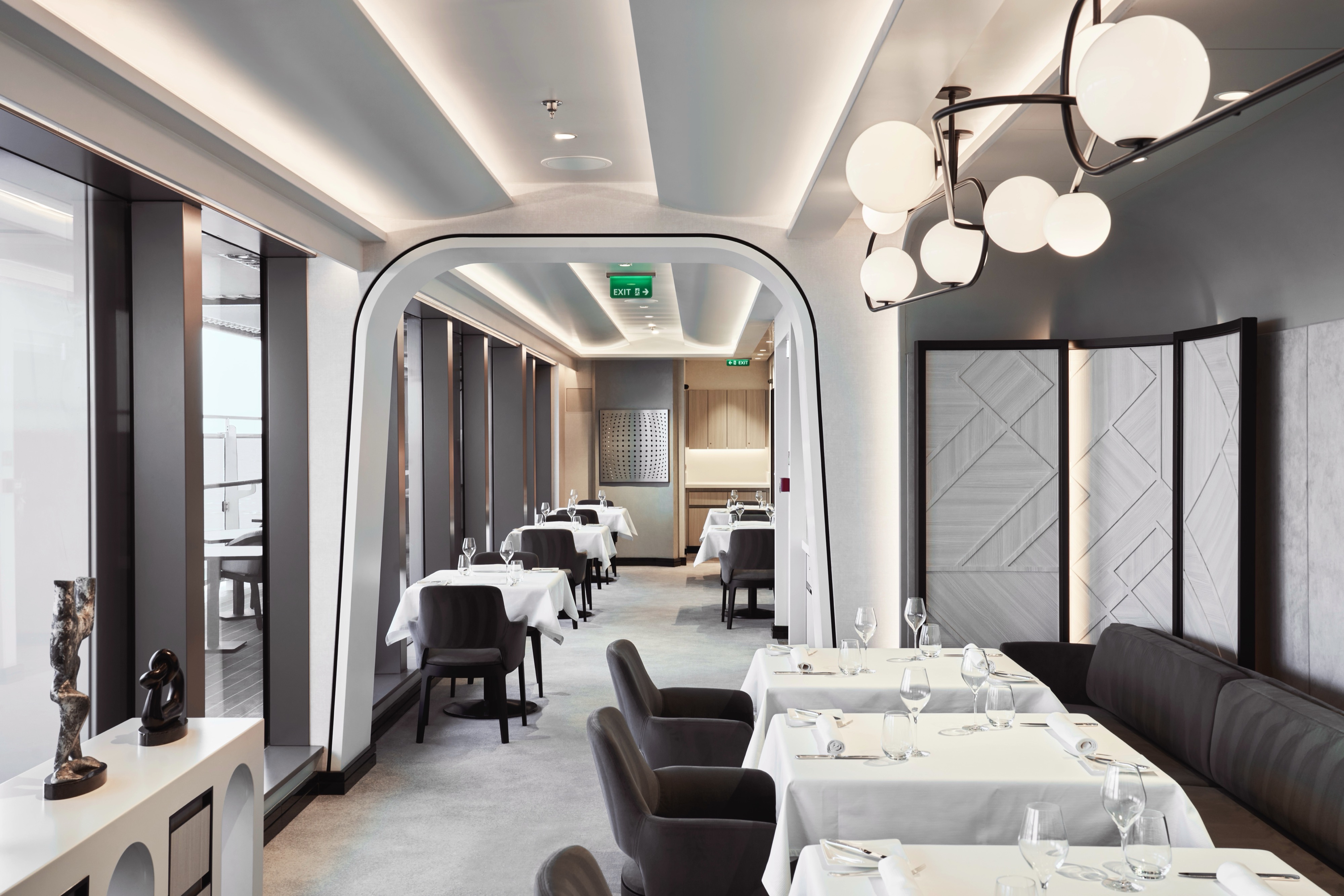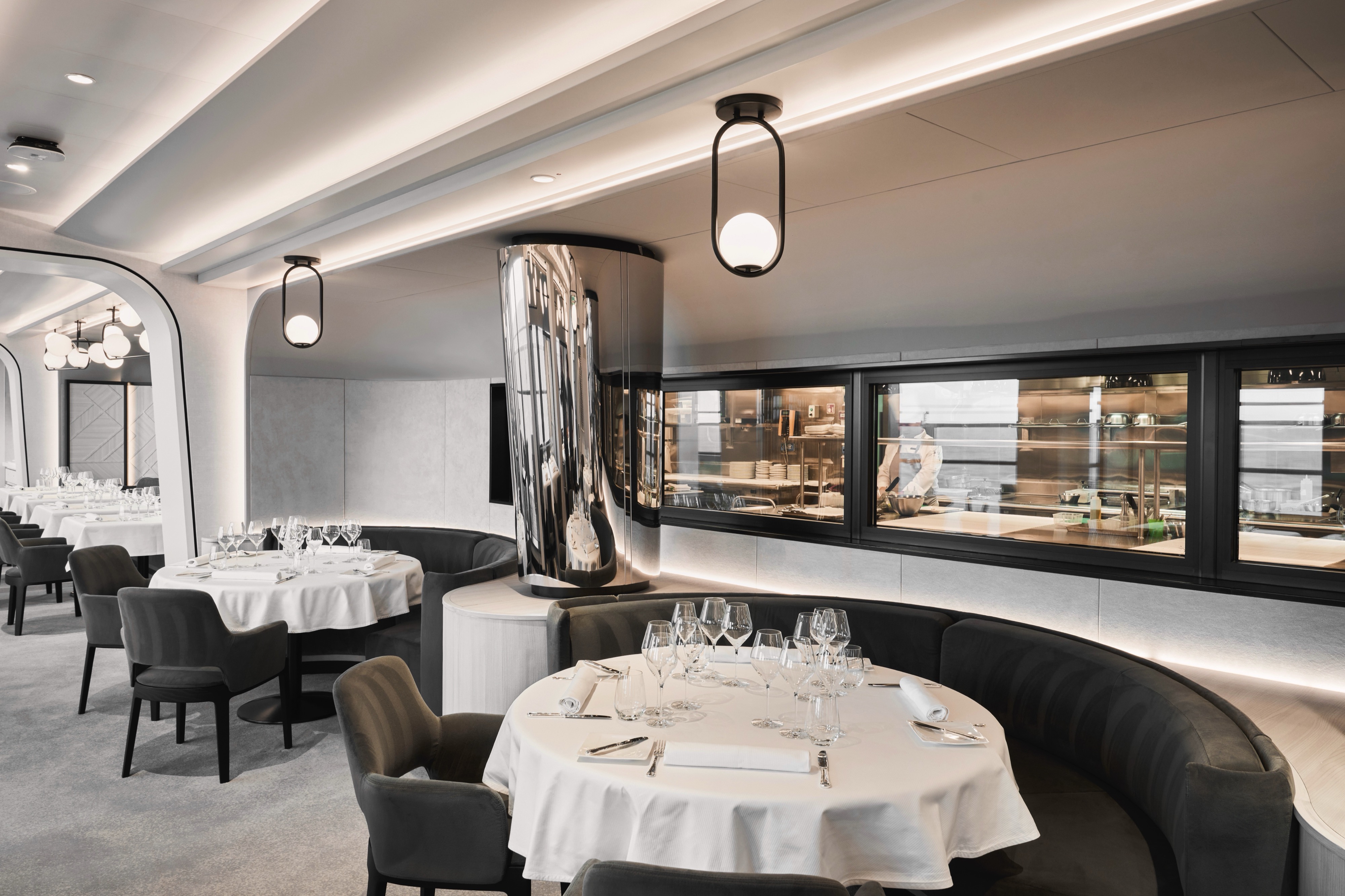 Effortlessly refined in its design, space creates a relaxed, convivial atmosphere, where bright sunshine streams through large portholes and Med-influenced music transports guests on a culinary journey inspired by the sea.