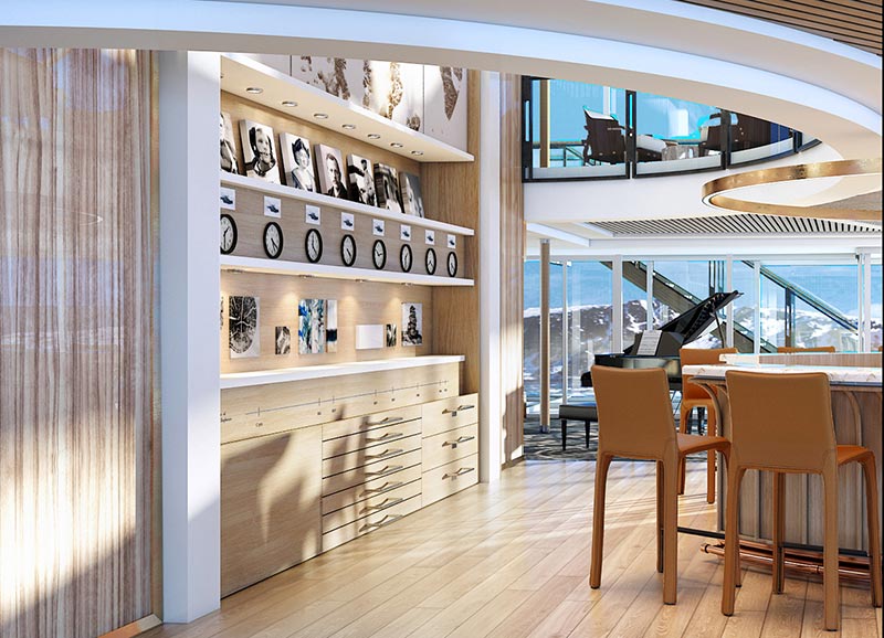 Panoramic lounges such as the Wintergarden and Explorer’s Lounge provide ocean views and comfortable seating. Complimentary beverages are served, creating an inviting space for conversation and quiet reflection.